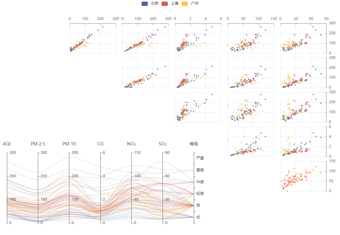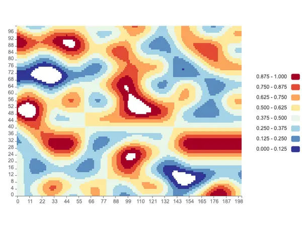 - 热力图:热力图使用颜色来表示数据的密度和分布情况,通常用于显示二维数据的热点区域。